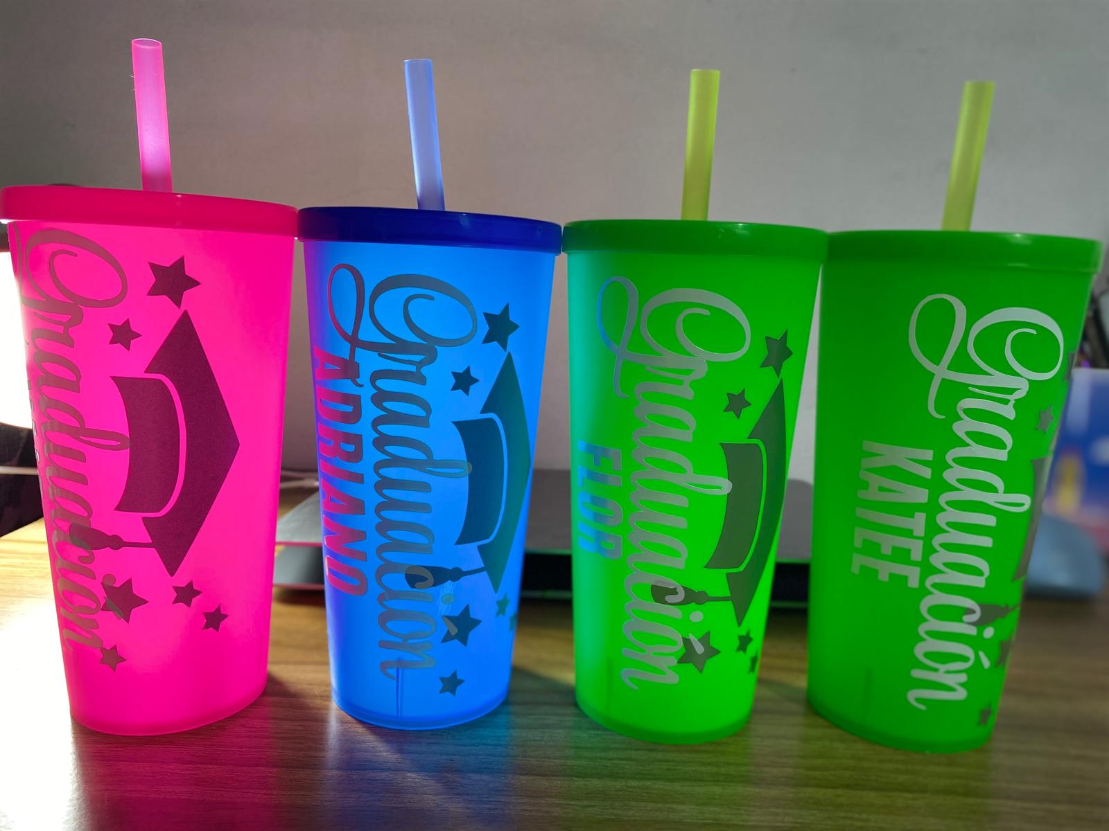 Vasos de plastico con sorbito personalizados
